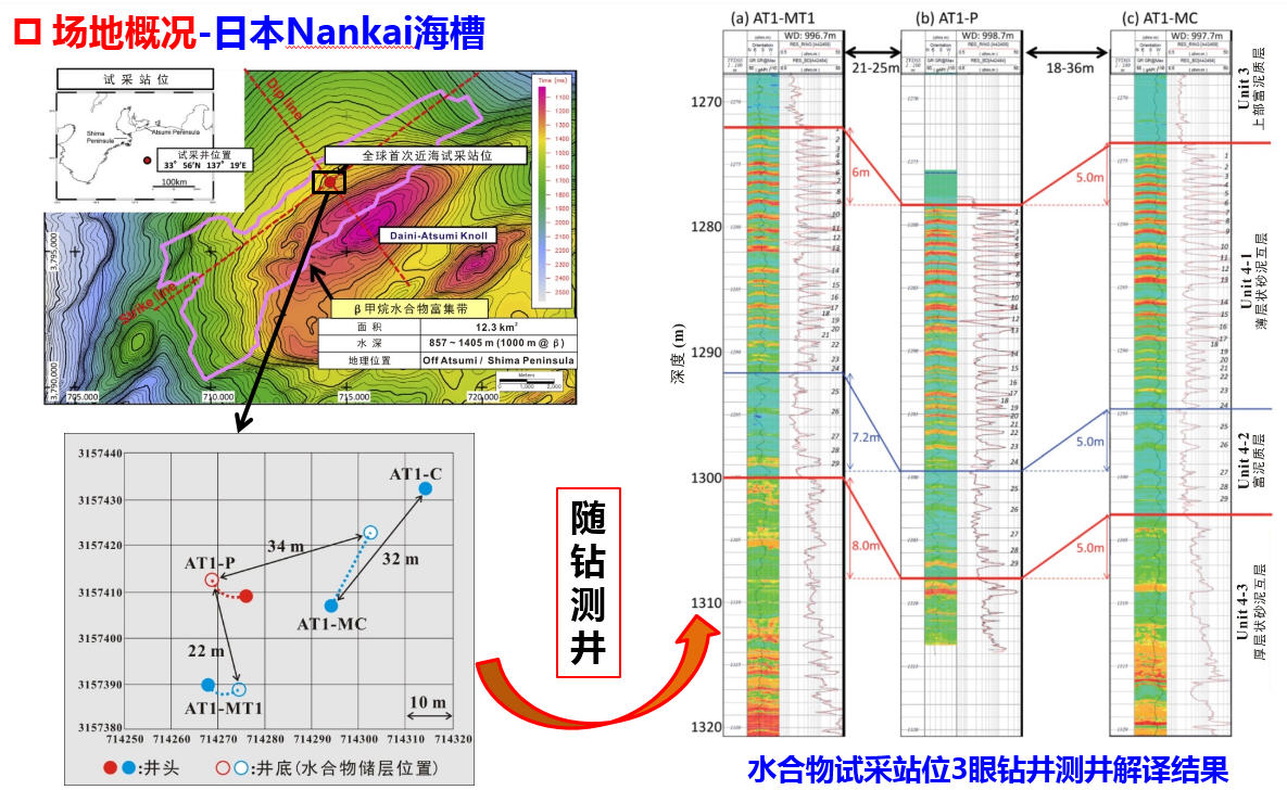 天然气水合物的储量巨大,初步预测碳含量是煤、石油、天然气等常规化石能源的2倍,将改变现有的能源市场。我国海域陆域均有天然气水合物发育,初步评价我国海域水合物资源量约为800亿吨当量。通过GMGS1-GMGS3航次调查,在南海圈定了6个成矿远景区、25个有利区块和24个钻探目标区。通过钻探调查,锁定两个超千亿方水合物矿藏。