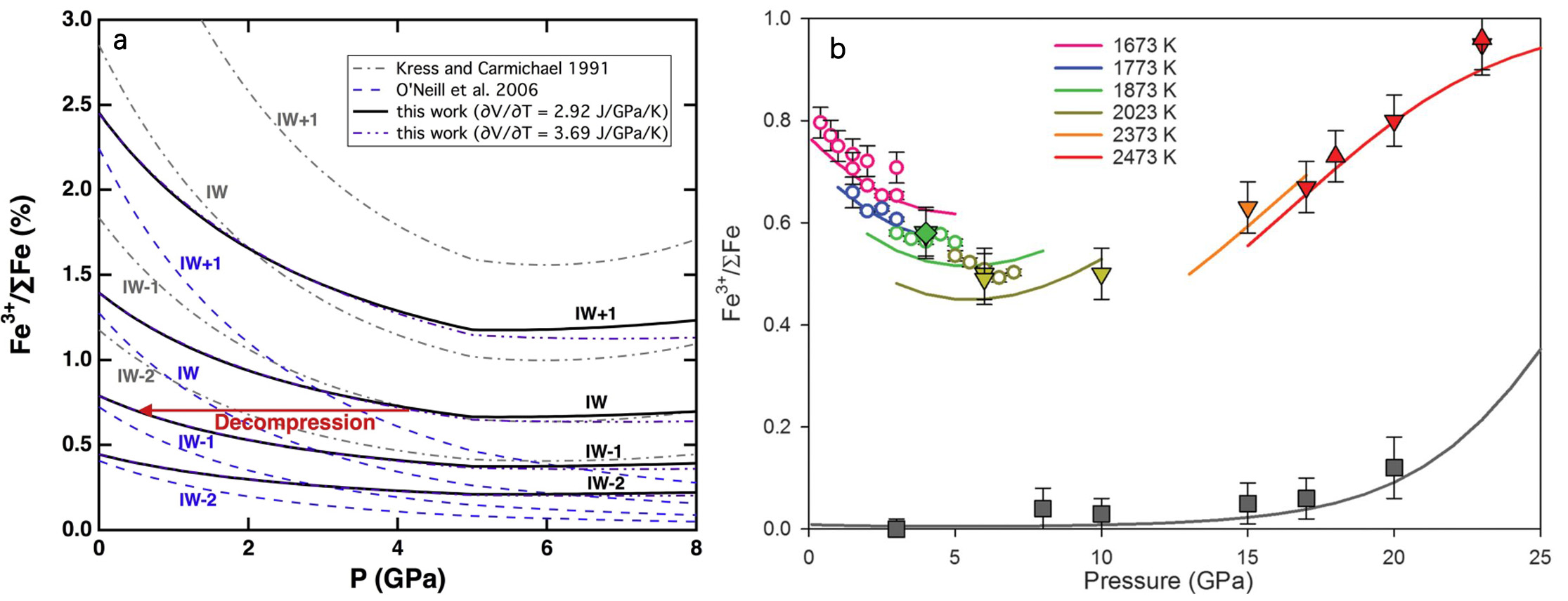 O’Neill H S C, Berry A J, McCammon C C, et al. An experimental determination of the effect of pressure on the Fe3+/∑Fe ratio of an anhydrous silicate melt to 3.0 GPa[J]. American Mineralogist, 2006, 91(2-3): 404-412.(链接)