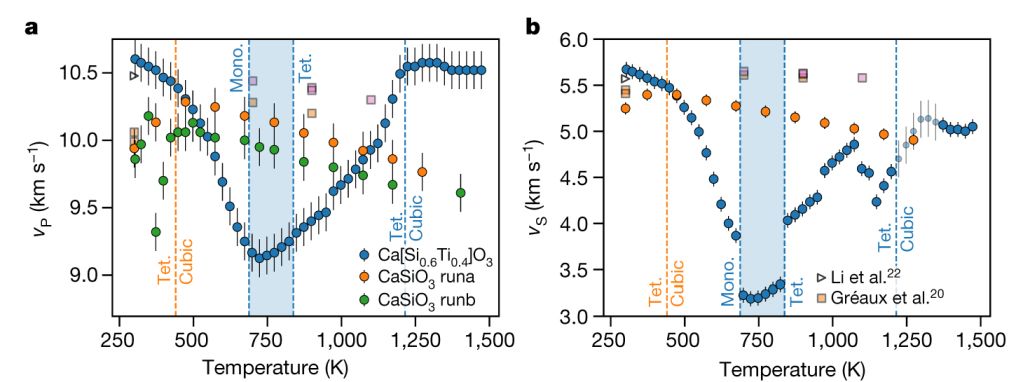 什么原因造成LLSVPs的横波波速异常?其主因究竟是温度异常还是由于物质成分异常,以及进一步地造成横波波速异常的成分又来自于什么地方?人们对此有很多解读,也存在很大争议。近日,来自英国伦敦大学学院的Thomson等在Nature上发表了题为“Seismic velocities of CaSiO3 perovskite can explain LLSVPs in Earth’s lower mantle”的最新成果,为解释LLSVPs提供了新的约束。