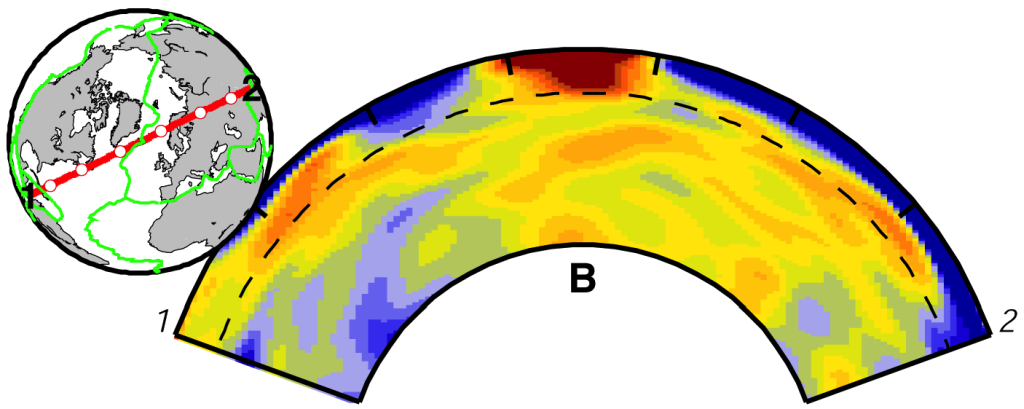 French S W, Romanowicz B. Broad plumes rooted at the base of the Earth's mantle beneath major hotspots[J]. Nature, 2015, 525(7567): 95.(链接)