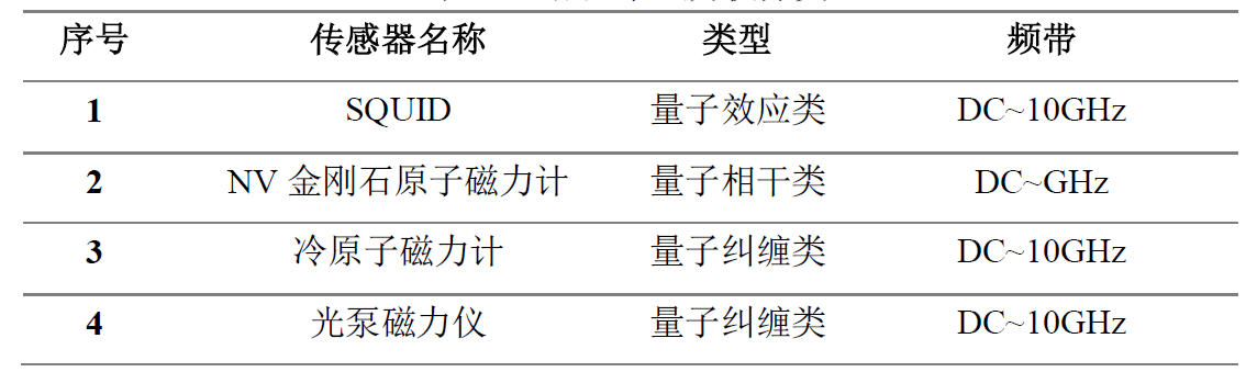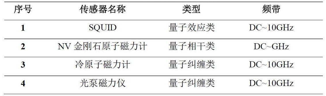 主流量子磁传感器包括超导量子干涉磁力仪(SQUID),氮空位(NV)金刚石原子磁力计,冷原子磁力计和光泵磁力仪等。如表1所示,此类磁传感器按工作机理可划分为量子效应类(I类)、量子相干类(II类)和量子纠缠类(III类)。