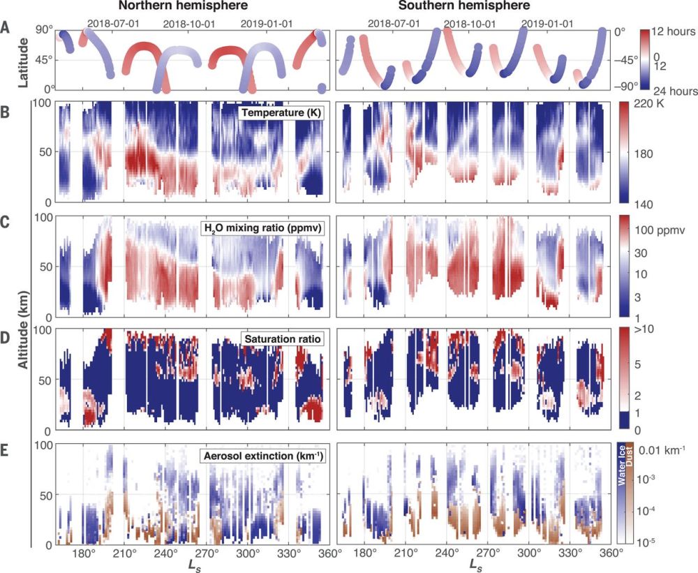 Fedorova等人通过研究2018-2019火星南半球春夏季期间火星大气的特征,发现: