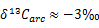 是碳同位素在碳酸岩和有机碳中的分馏差,其大致保持恒定,且值