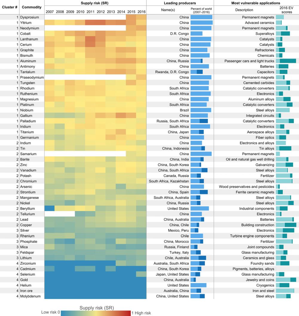 Gulley A L, Nassar N T, Xun S. China, the United States, and competition for resources that enable emerging technologies[J]. Proceedings of the National Academy of Sciences, 2018, 115(16): 4111-4115.(链接)