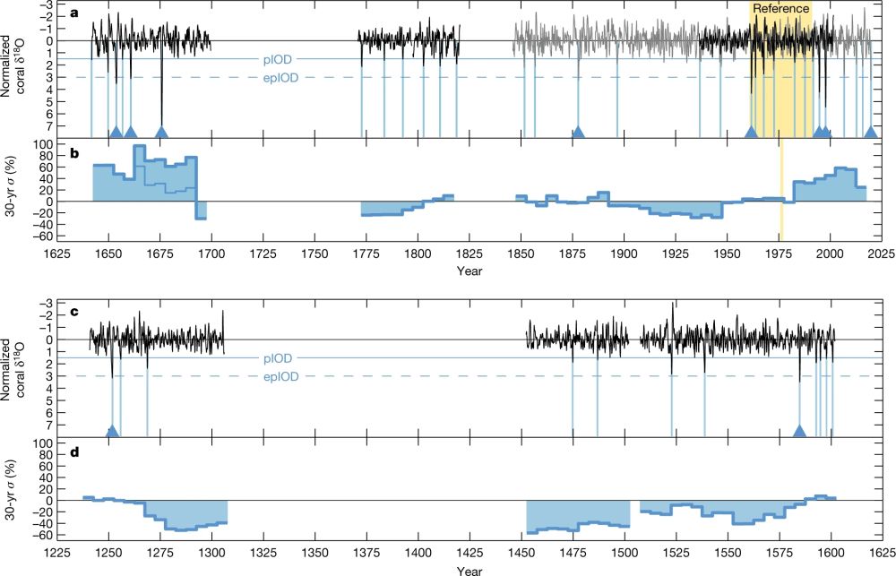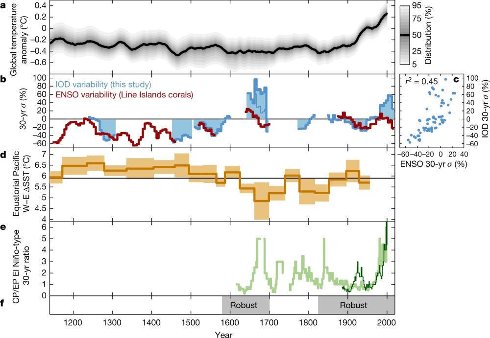 Abram N J, Wright N M, Ellis B, et al. Coupling of Indo-Pacific climate variability over the last millennium[J]. Nature, 2020, 579: 385–392.(链接)