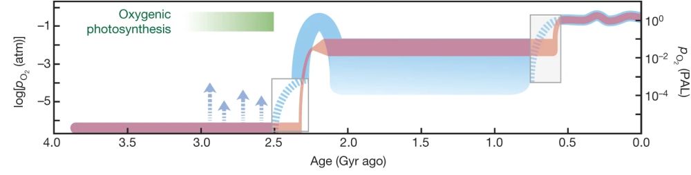 Lyons T W, Reinhard C T, Planavsky N J. The rise of oxygen in Earth’s early ocean and atmosphere[J]. Nature, 2014, 506(7488): 307-315.(链接)