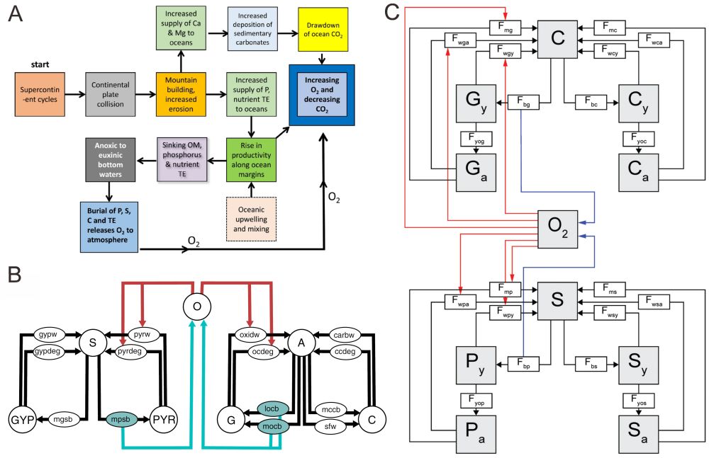 Lenton T M, Daines S J, Mills B J W. COPSE reloaded: an improved model of biogeochemical cycling over Phanerozoic time[J]. Earth-Science Reviews, 2018, 178: 1-28.(链接)
