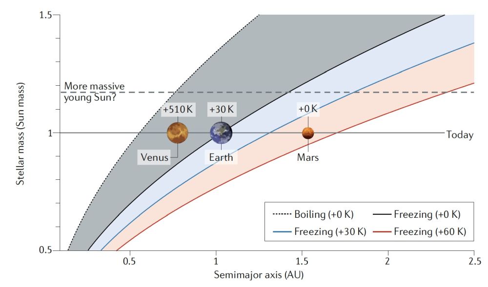 图2 随着温室效应和太阳活动而移动的“宜居带”(Lapotre et al., 2020)