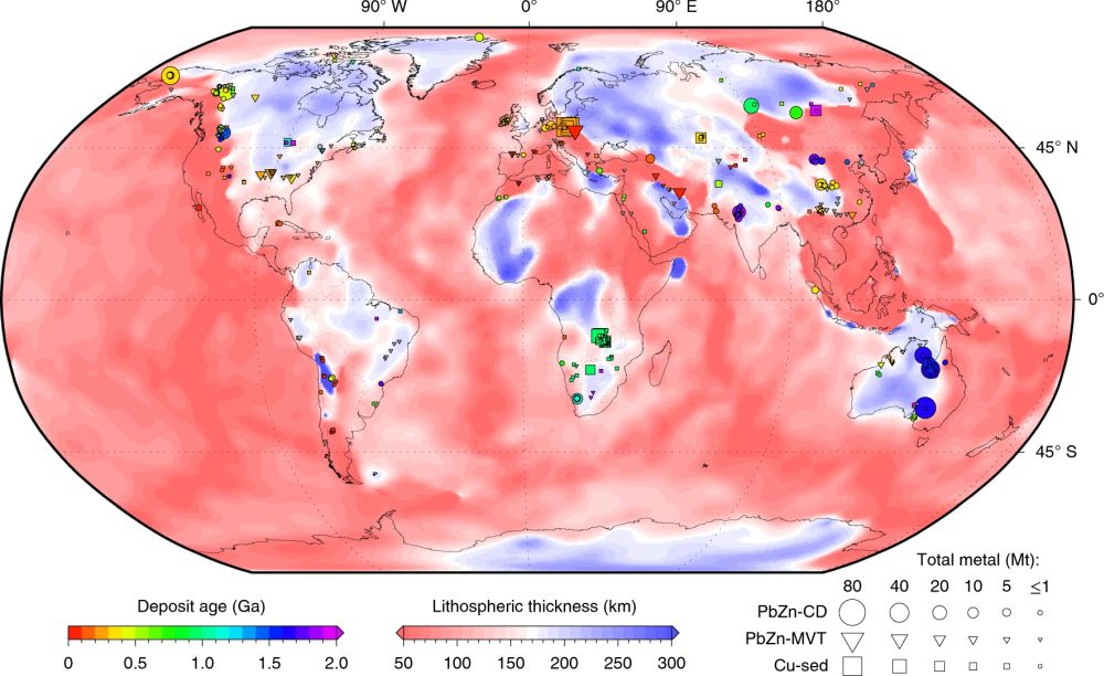 Hoggard M J, Czarnota K, Richards F D, et al. 2020. Global distribution of sediment-hosted metals controlled by craton edge stability [J]. Nature Geoscience, 13: 504–510.(链接)