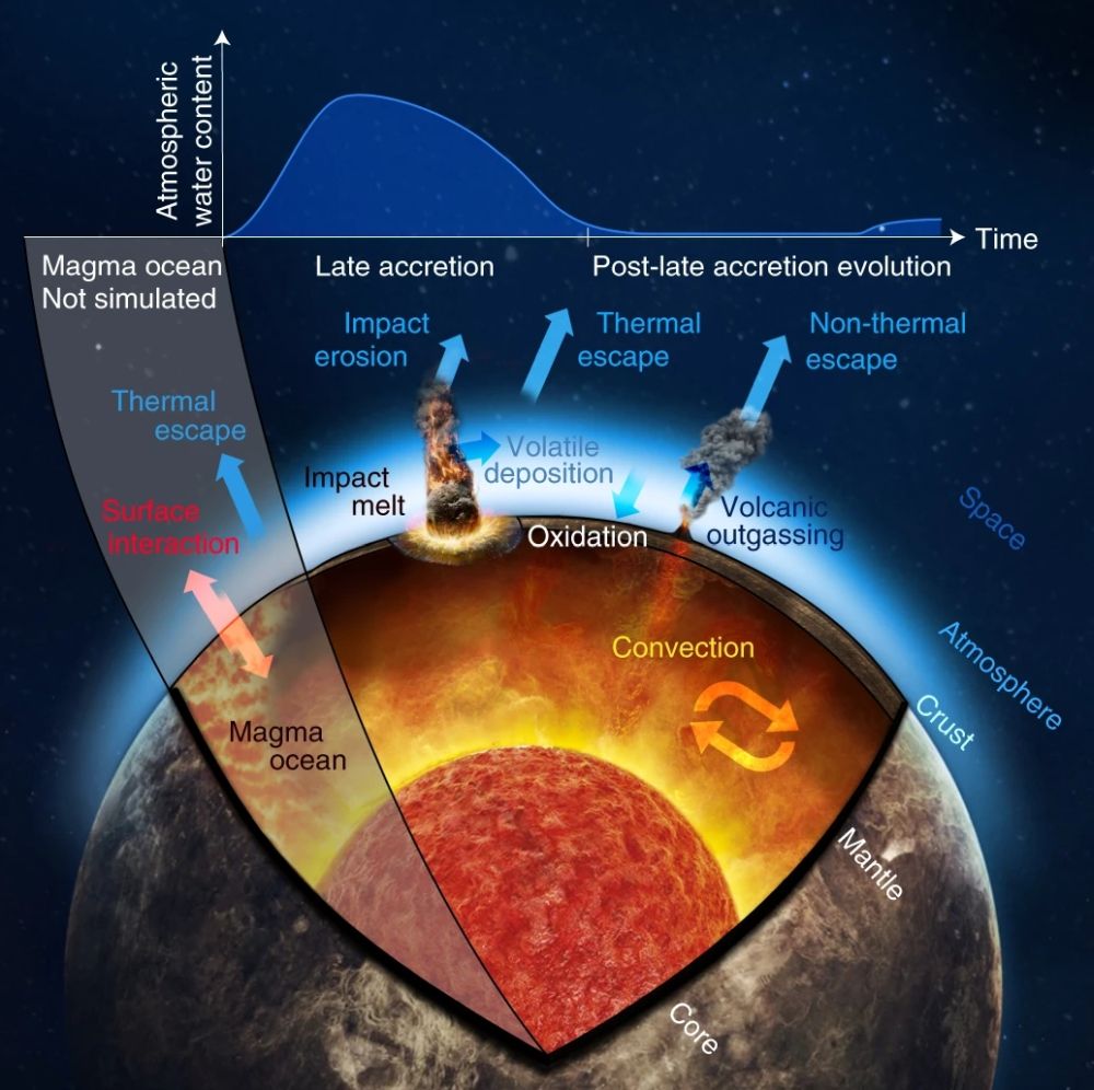 Gillmann C, Golabek G J, Raymond S N, et al. Dry late accretion inferred from Venus’s coupled atmosphere and internal evolution[J]. Nature Geoscience, 2020, 13(4): 265-269. (链接)