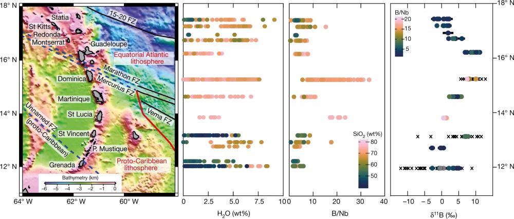 Cooper G F, Macpherson C G, Blundy J D, et al. Variable water input controls evolution of the Lesser Antilles volcanic arc[J]. Nature, 2020, 582(7813): 525-529. (链接)