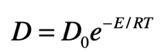 其中,T是温度(单位K),D0 是指前因子(即温度无限大时的扩散系数), E是表观活化能,R是