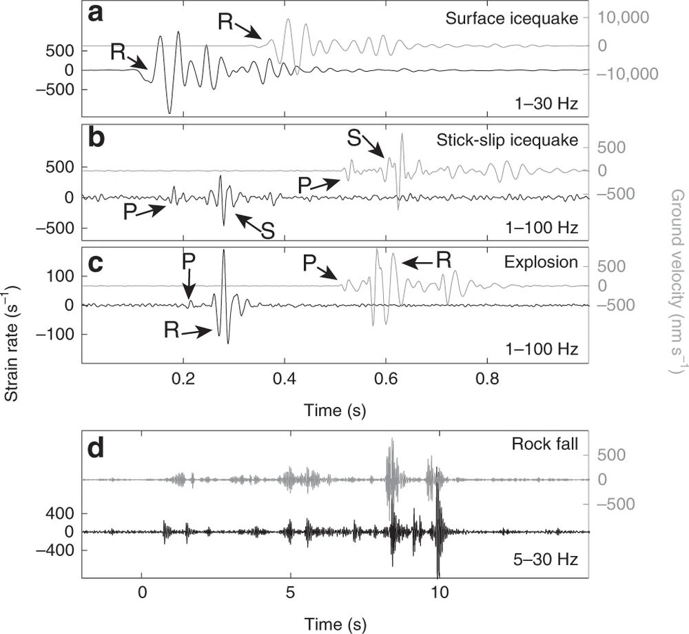 Walter F, Graff D, Lindner F, et al. Distributed acoustic sensing of microseismic sources and wave propagation in glaciated terrain[J]. Nature Communications, 2020, 11(1): 1-10.(原文链接)