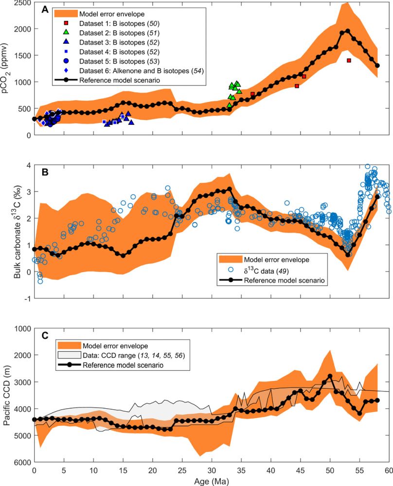 Reconciling atmospheric CO2, weathering, and calcite compensation depth across the Cenozoic[J]. Science Advances, 2021,7: eabd4876.(原文链接)