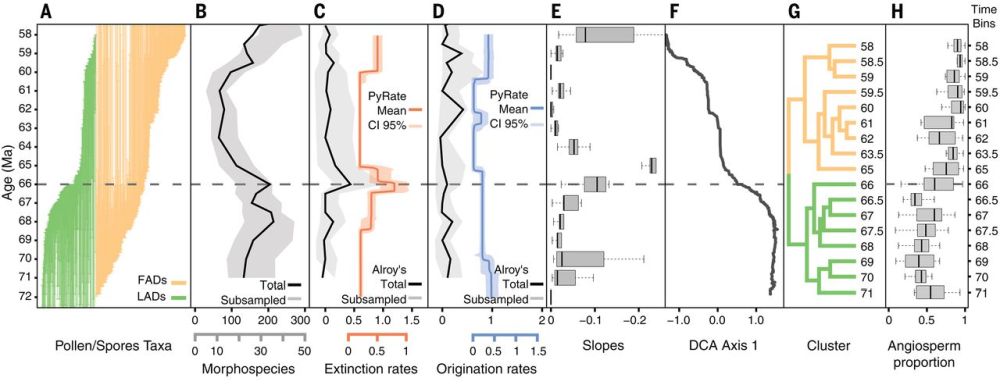 巴拿马史密森热带研究所的Mónica Carvalho博士、Carlos Jaramillo教授及其团队最近在Science发表论文(Carvalho et al., 2021)。该团队分析了哥伦比亚K/Pg界限前后5万多粒花粉和6000多块树叶化石,探讨了事件前后低纬热带地区的植物多样性、植物组成和森林结构的变化,以及K/Pg事件在重塑现代热带雨林方面的作用。