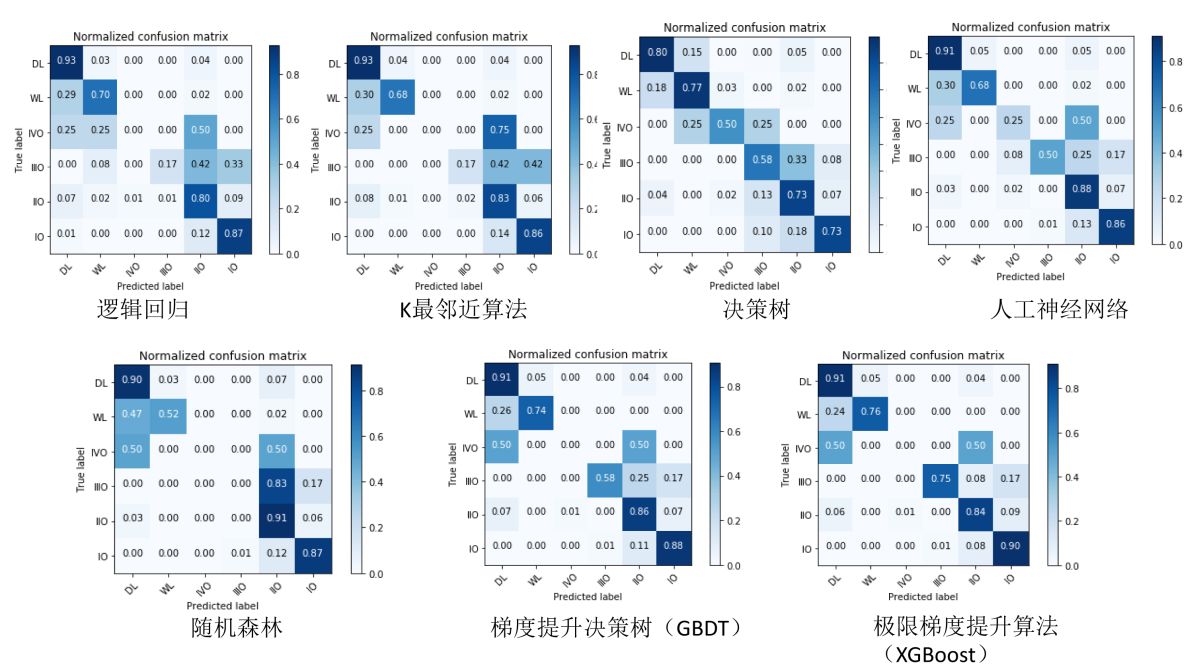 图1 不同算法检验结果的混淆矩阵