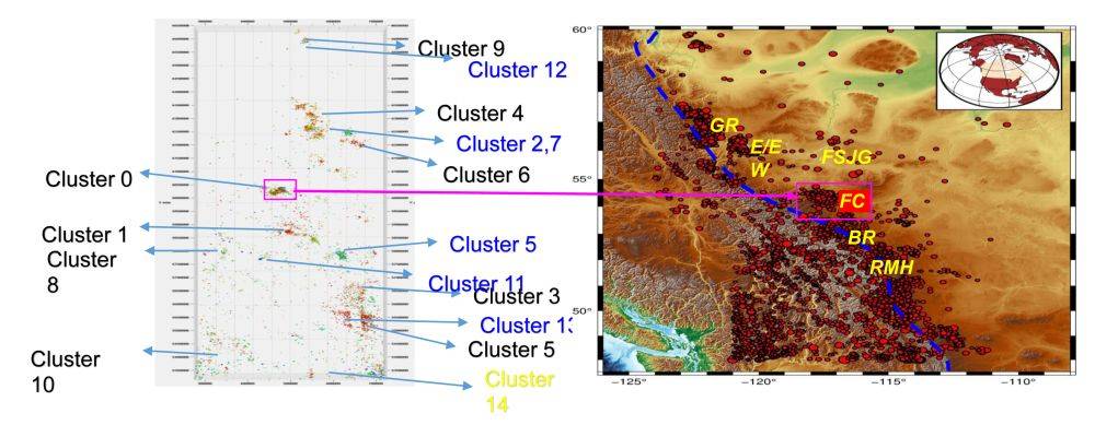 应用实例四:利用微地震数据预测压裂诱发的地震事件。在过去的几年中,美国中部和东部的地震数量急剧增加,在1973年至2008年之间,平均发生21次M3+以上的地震。在2009-2013年期间,该比率跃升至每年平均99次M3+地震,并且该比率继续上升。仅在2014年,就有659次M3和更大的地震。这些地震大多数在3-4级之间,足以被感觉到,但又足够小,几乎不会造成破坏。在加拿大西部,诱发地震是一个非常紧迫的问题。在艾伯塔省和卑诗省都有触发地震的历史,来自于常规资源生产、废水处理和水力压裂等。首次通过人工智能方法,检测水力压裂与诱发地震之间的关系,通过压裂作业次数及强度,预测未来诱发地震的发生(图2)。