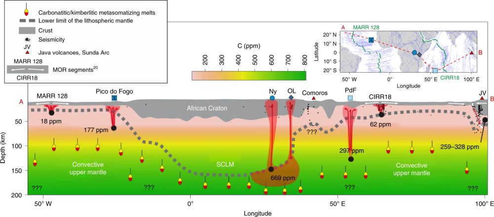 Aiuppa, A, Casetta ?F, Coltorti M, et al. Carbon concentration increases with depth of melting in Earth’s upper mantle [J]. Nature Geoscience, 2021, 14: 697–703.(原文链接)