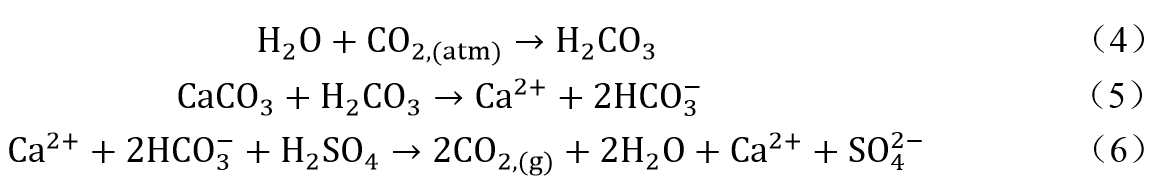 ②硫化物矿物氧化过程产生的硫酸溶解碳酸盐矿物并使其快速释放二氧化碳。