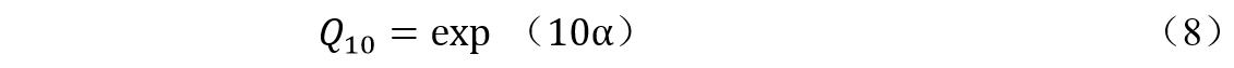 其中α为公式(7)中的平均增长率系数。在拉瓦尔集水区,0-25℃温度范围内的Q10约2.0±0.1.