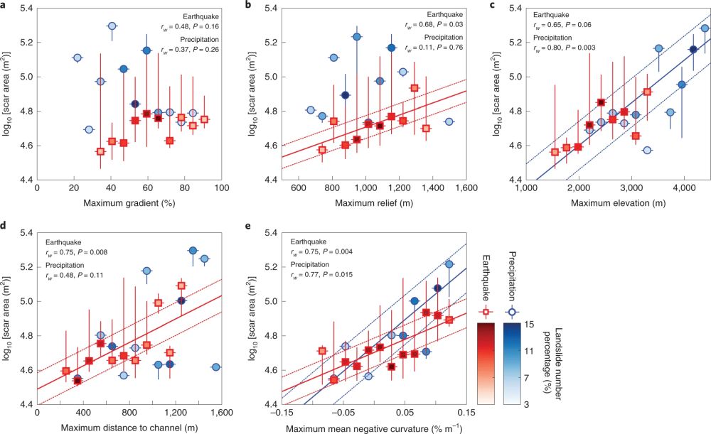 图5 岩质滑坡物源区与地震和降水控制的比较(Li and Moon, 2021)