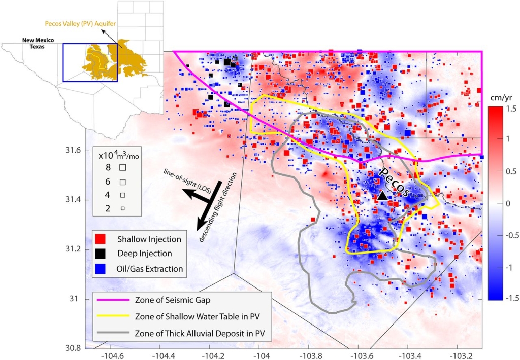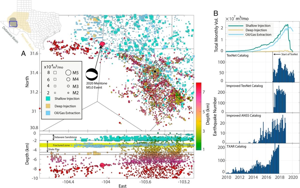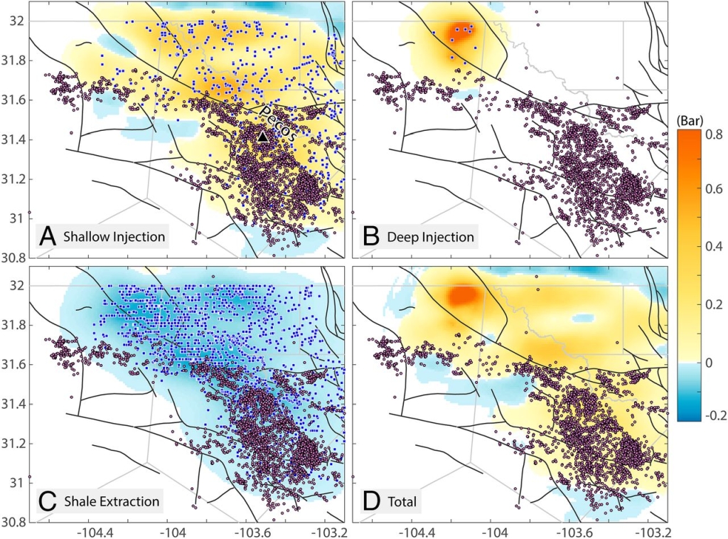Zhai G, Shirzaei M, Manga M. Widespread deep seismicity in the Delaware Basin, Texas, is mainly driven by shallow wastewater injection[J]. Proceedings of the National Academy of Sciences, 2021, 118(20) : e2102338118.(原文链接)