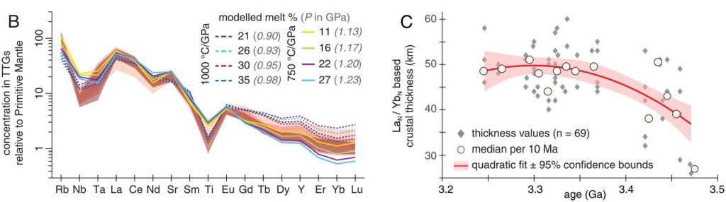 图1 微量元素地球化学模拟(图B)和La/Yb变化规律(图C)均指示Singhbhum克拉通逐渐增厚(Chowdhury et al., 2021)