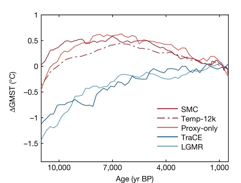 Kaufman D, McKay N, Routson C, et al. Holocene global mean surface temperature, a multi-method reconstruction approach[J]. Scientific Data, 2020, 7(1): 1-13.