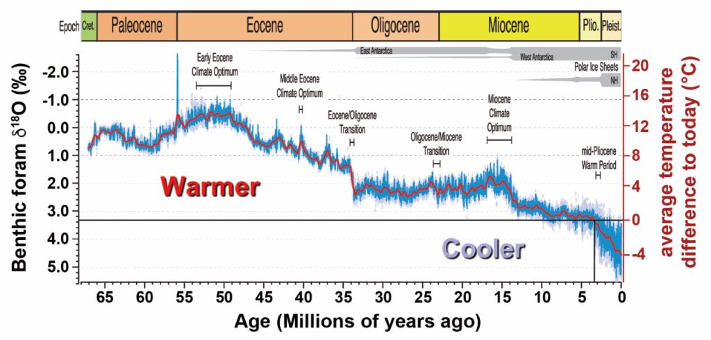 图4 深海底栖有孔虫化石记录的晚白垩世以来全球温度变化情况(Westerhold et al., 2020)