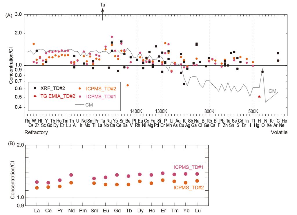 综合上述这些岩石学、矿物学、同位素组成和年代学的研究结果,Yokoyama et al. (2022)认为Ryugu返回样品是CI型碳质球粒陨石,它们比现有其它同类型的样品更原始。