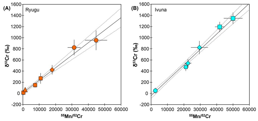 图6 Ryugu返回样品的Mn-Cr灭绝核素年代学(Tachibana et al., 2022)