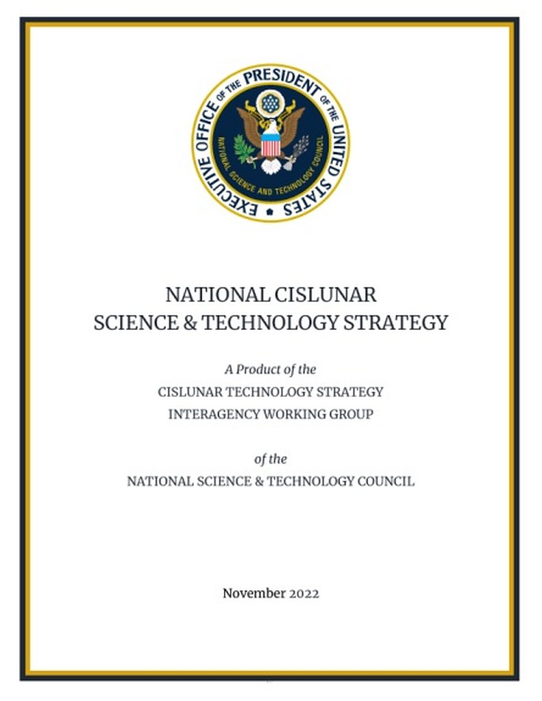 2022年11月,美国白宫科技政策办公室(OSTP)发布首份国家地月科学与技术战略(National Cislunar Science & Technology Strategy)(图1),旨在解决美国的科技领先地位如何支持所有航天国家和实体负责任、和平和可持续地开展地月空间探索与利用。