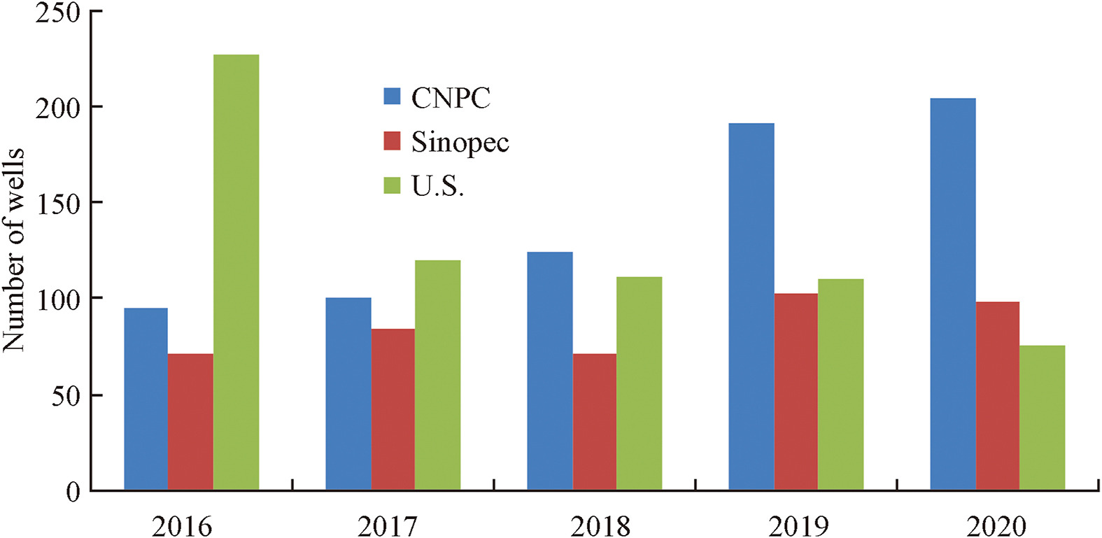 “十三五”期间,国内深井、超深井油气钻井技术发展迅速,取得了一大批技术成果,包括:(1)高端设备,如自动化钻机、控制压力钻井、测井、固井和完井技术、高扭矩顶部驱动系统和深井连续油管操作单元;(2)先进工具,如垂直钻井工具、非平面齿钻头、高强度膨胀管、高温高扭矩长寿命螺杆、扭转冲击工具、协同破岩工具、随钻测量工具和安全监控工具;(3)钻井液材料,如耐温高密度油基钻井液、高性能水基钻井液、韧性水泥渣以及自愈合水泥浆;(4)全生命周期井筒完整性钻井技术体系。
