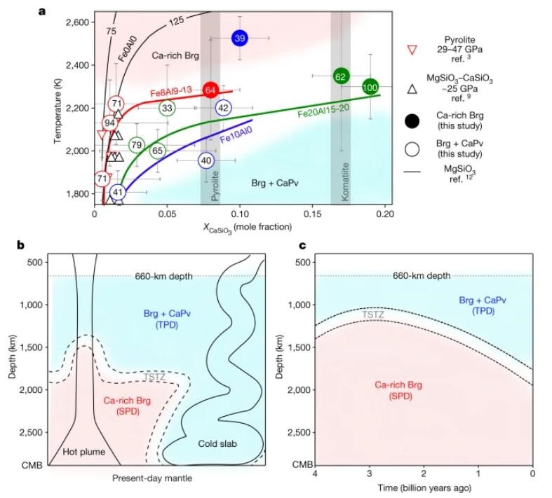 2022年10月19日,《自然》(Nature)发表的题为《地球深地幔中布里奇曼石的钙溶解》(Calcium dissolution in bridgmanite in the Earth’s deep mantle)文章指出,低温低压下稳定共存的两种具有钙钛矿结构的矿物相在高温高压下会互溶成一种矿物相,这表明温度足够高的深部下地幔可能具有不同于浅层下地幔的矿物学特征;与此同时,由于早期地球地幔的温度要高很多,这意味着早期下地幔的矿物学特征也许不同于现今的下地幔。