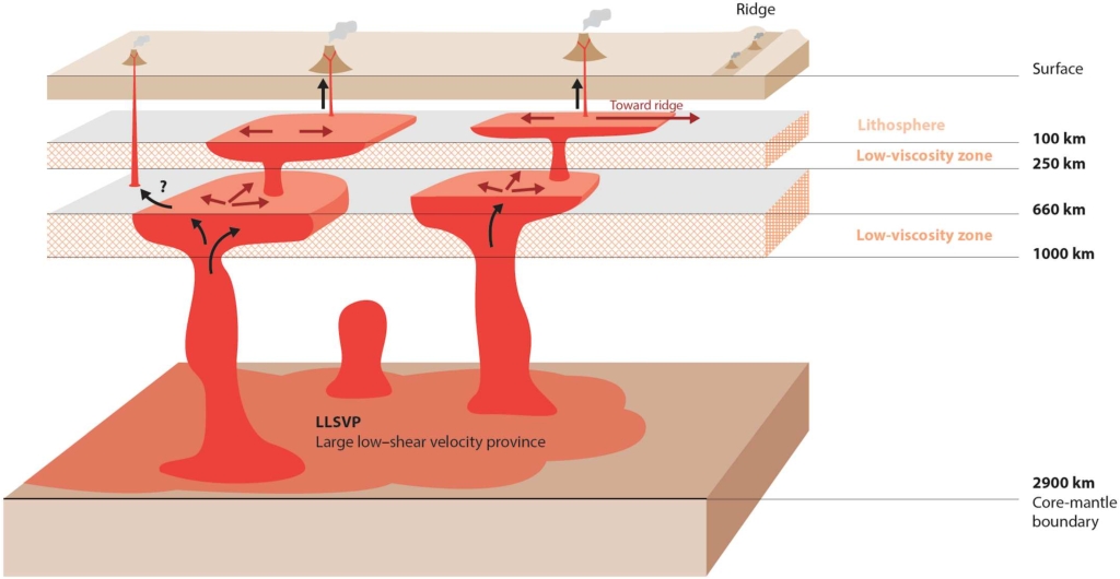 Liu H, Leng W. Plume‐tree structure induced by low‐viscosity layers in the upper mantle[J]. Geophysical Research Letters, 2020, 47(1): e2019GL086508.
