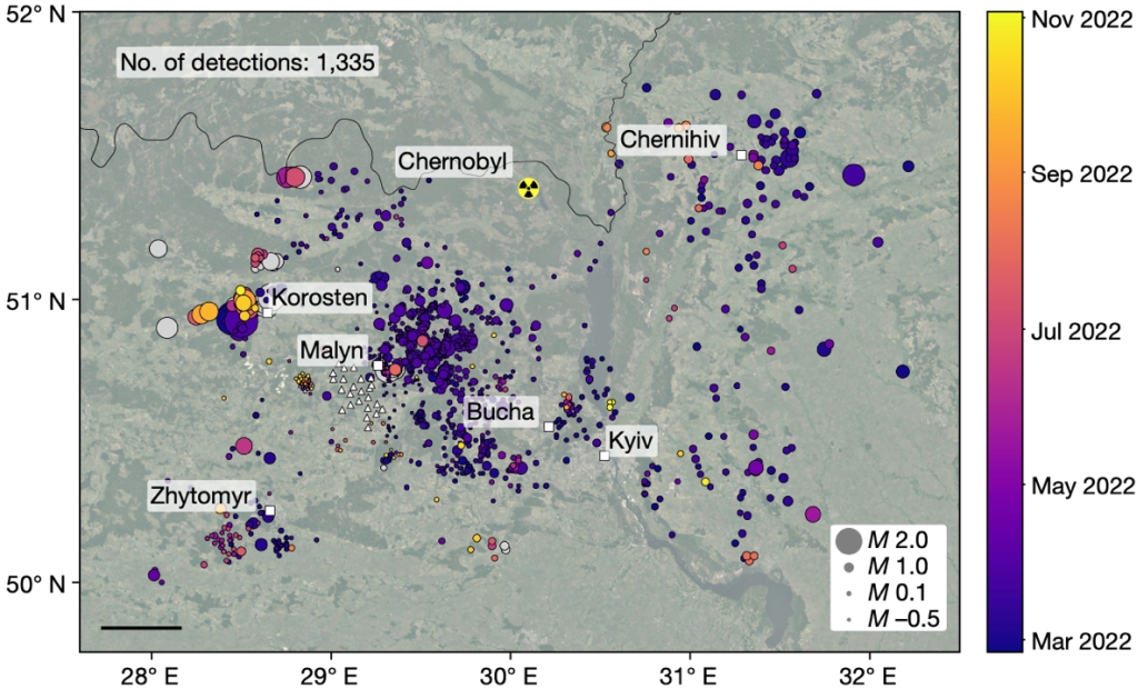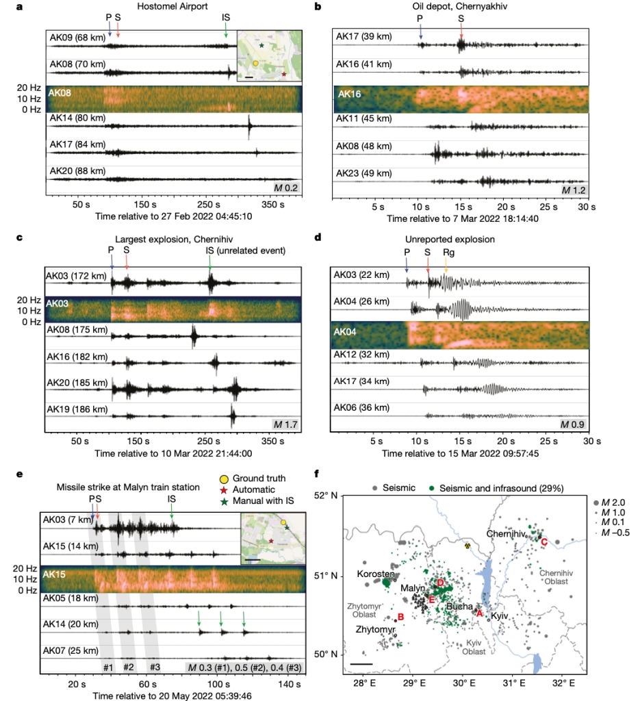 Dando B D E, Goertz-Allmann B P, Brissaud Q, et al. Identifying attacks in the Russia–Ukraine conflict using seismic array data[J]. Nature, 2023: 1-6. (原文链接)