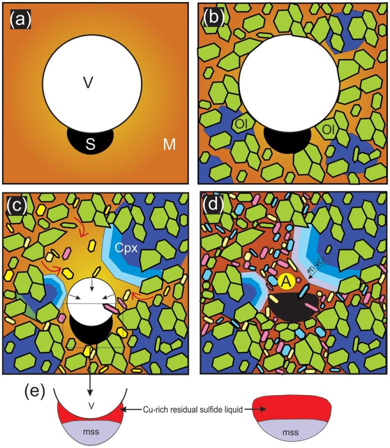 Barnes S J, Vaillant M L, Godel B, et al. Droplets and Bubbles: Solidification of Sulphide-rich Vapour-saturated Orthocumulates in the Norilsk-Talnakh Ni-Cu-PGE Ore-bearing Intrusions[J]. Journal of Petrology, 2019, 60(2): 269-300.