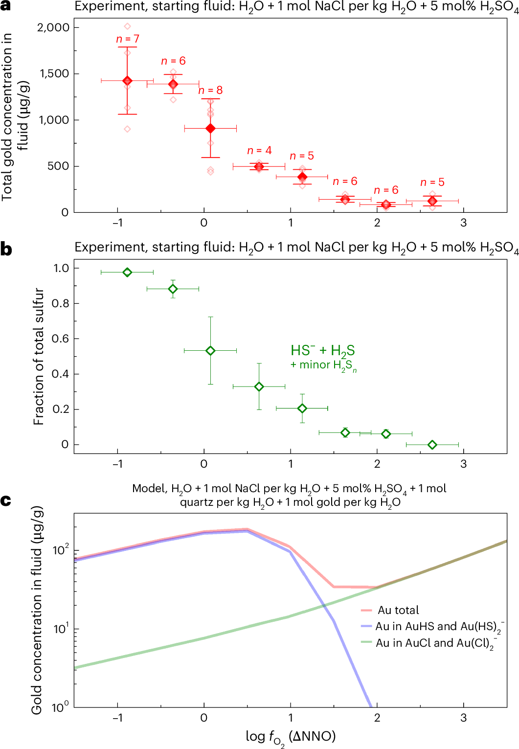 近期瑞士日内瓦大学的Farsang and Zajacz(2025)在Nature Geoscience发表了一项重要成果,他们通过新颖的实验确定了在岩浆弧条件下水流体中的主要硫物种是二氧化硫(SO2)、硫化氢(H2S)和硫氢根(HS–),与传统认识明显不同,这为理解岩浆过程中硫的行为和金的富集机制提供了关键见解。