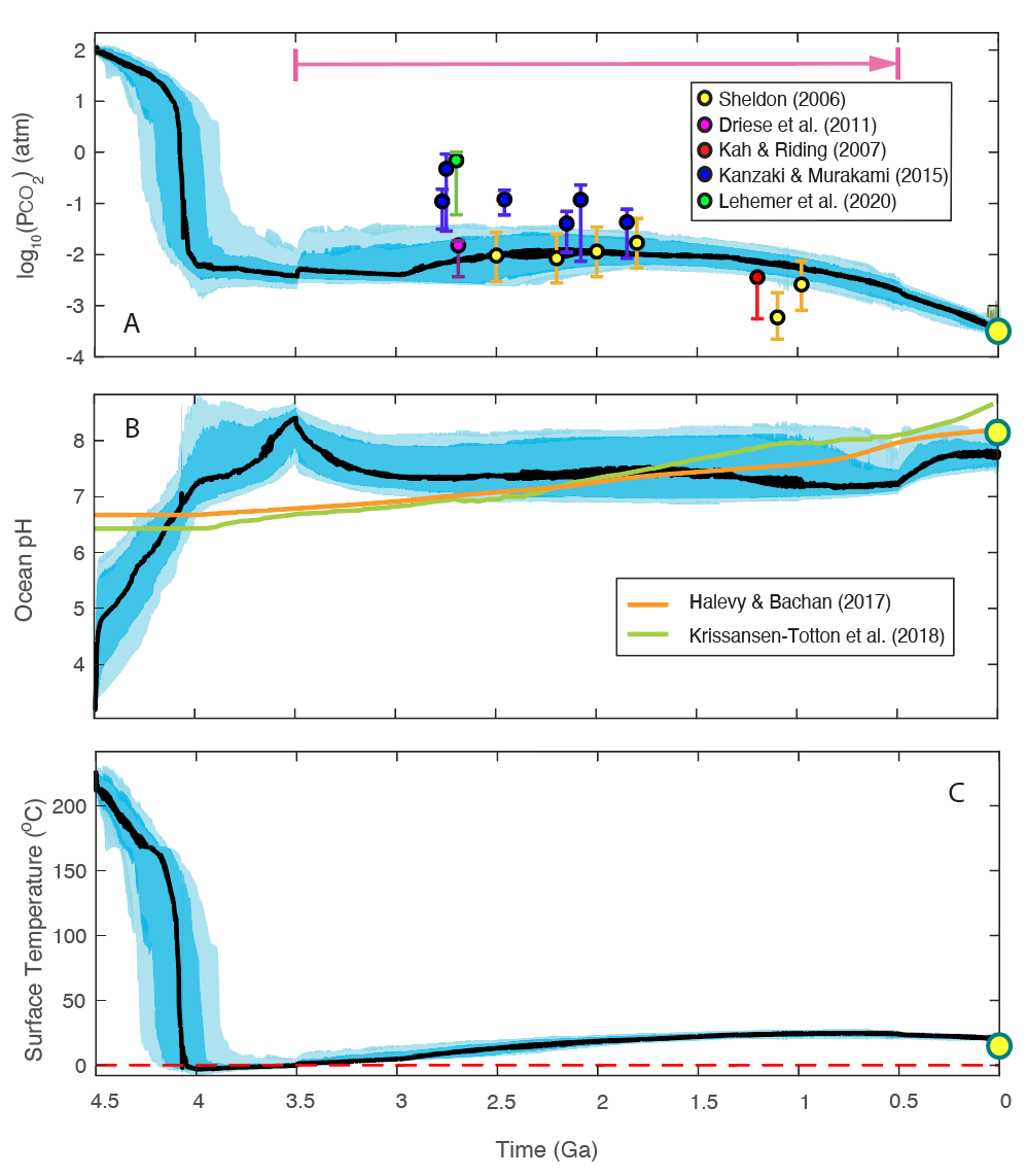 Krissansen - Totton J, Arney G N, Catling D C. Constraining the climate and ocean pH of the early Earth with a geological carbon cycle model[J]. Proceedings of the National Academy of Sciences, 2018, 115: 4105-4110.