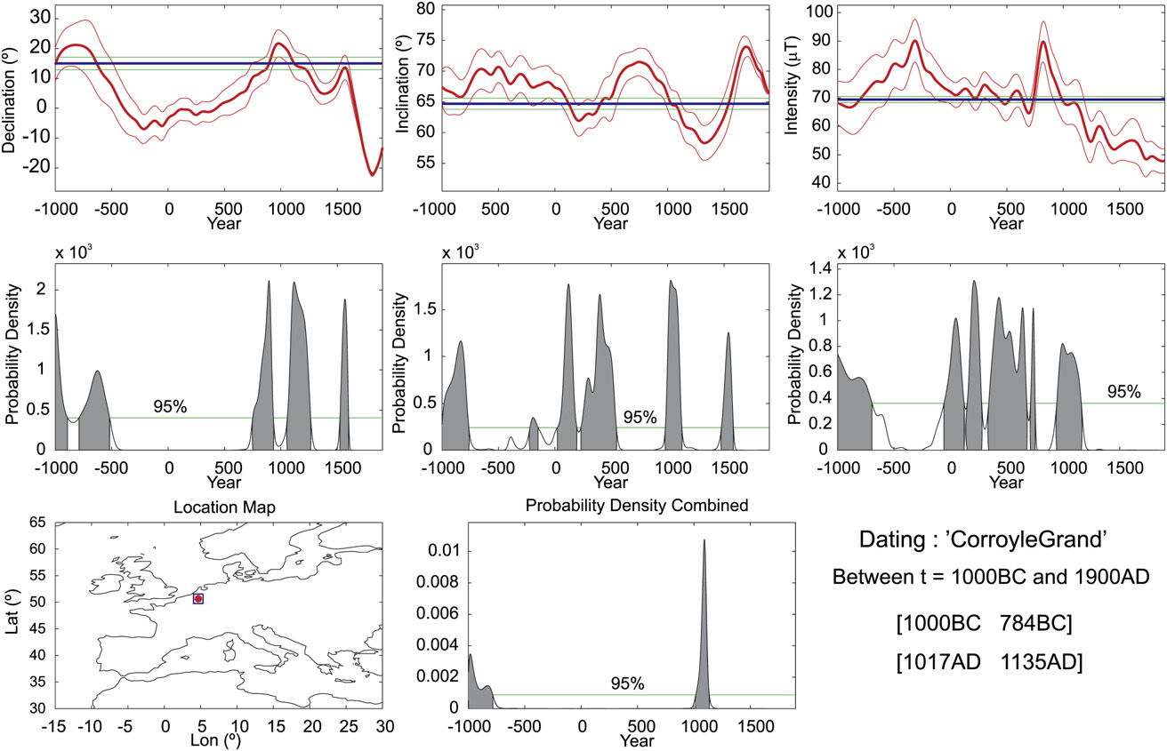 Hervé G, Lanos P. Improvements in archaeomagnetic dating in Western Europe from the Late Bronze to the Late Iron Ages: An alternative to the problem of the Hallstattian Radiocarbon Plateau[J]. Archaeometry, 2018, 60(4): 870-883.