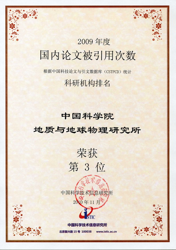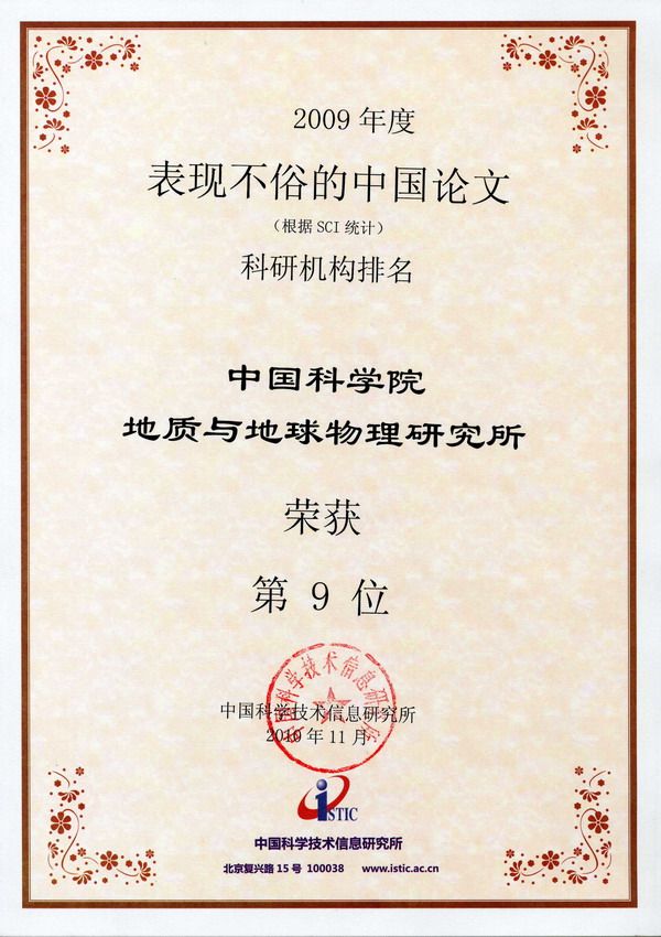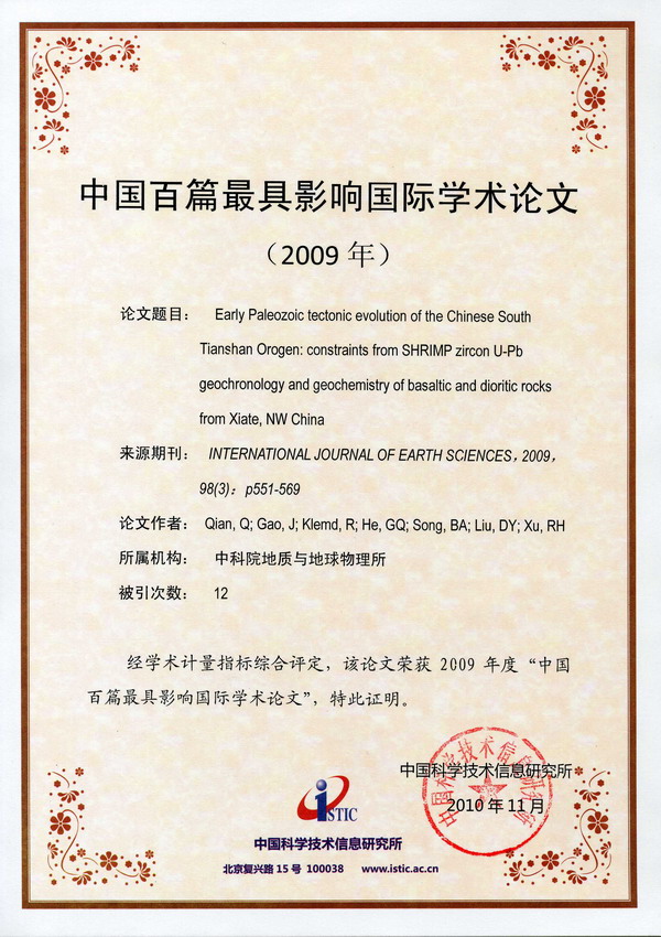 我所钱青副研究员等人2009年发表在International Journal of Earth Sciences期刊上的一篇论文被评选为“2009年中国百篇最具影响国际学术论文”(图1)。此外,我所在“2009年度表现不俗的中国论文”科研机构类别中排名第九(图2)、在“2009年度国内论文被引用次数”科研机构类别中排名第三(图3)、在“2009年度国际论文累计被引用篇数”科研机构类别中排名第13位(图4)。