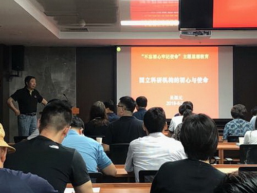 所长吴福元给机关和矿产党支部讲党课