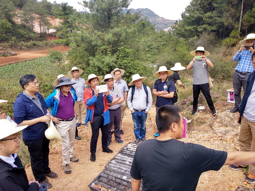 在两天的野外工作中,团队考察了白云鄂博矿床的主矿、东矿和西矿采坑,矿区外围的白云鄂博“1号脉”—火成碳酸岩脉,系统地了解了赋矿岩层(H8白云岩)的岩性、产状,稀土-铁矿石的矿物学特征、种类和产状,围岩蚀变类型等区域和矿床地质特征。