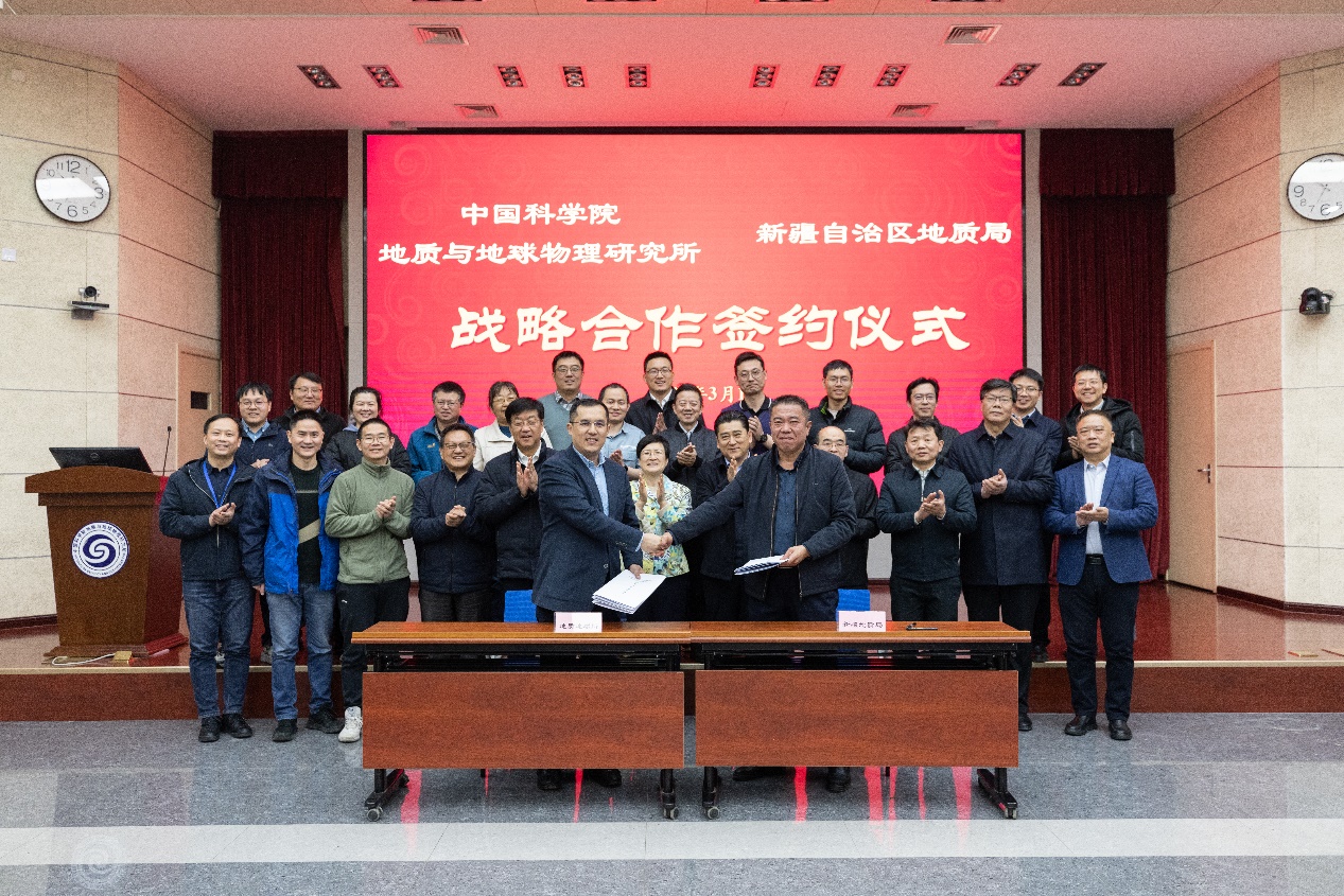 2024年3月1日,新疆自治区地质局党组书记、副局长黄雪伟等一行8人来所交流访问。我所所长底青云院士、副所长赵亮研究员,部分科研骨干及管理部门成员参加会议。