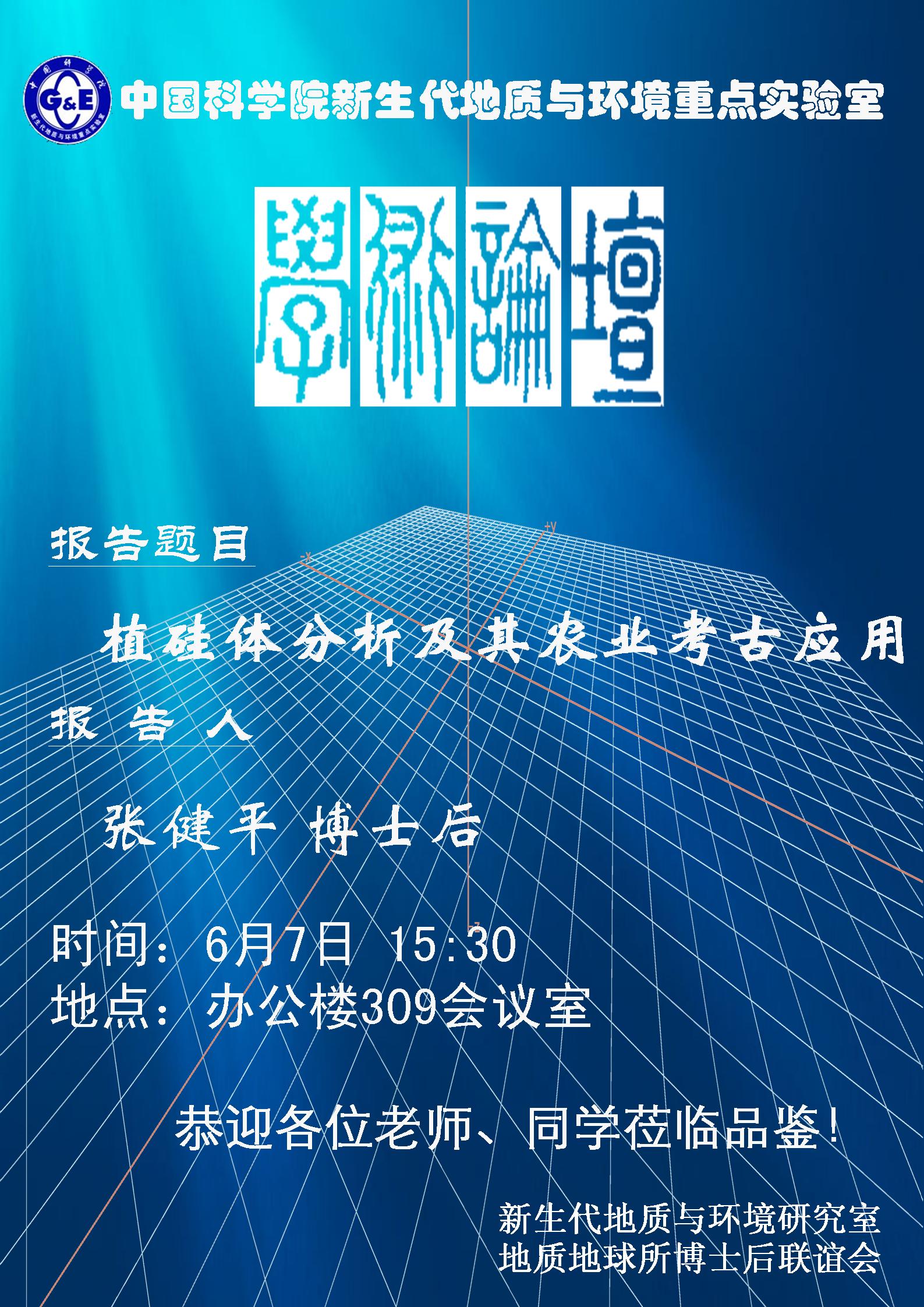 6月7日新生代地质与环境重点实验室张健平博士后学术报告--植硅体分析及其农业考古应用