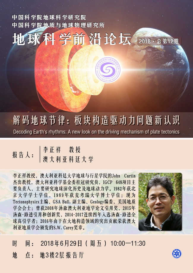 【6.26】地球科学前沿论坛:李正祥 教授