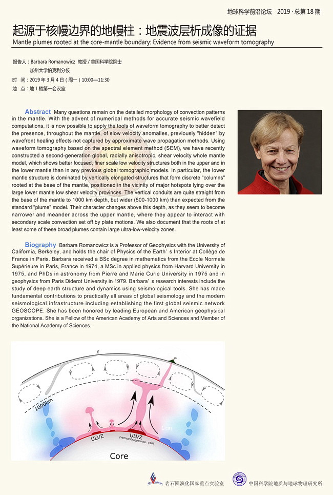 【3.4】地球科学前沿论坛:Barbara Romanowicz 教授