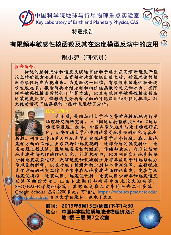 【8.15】地星室特邀报告:谢小碧 研究员,裴顺平 研究员