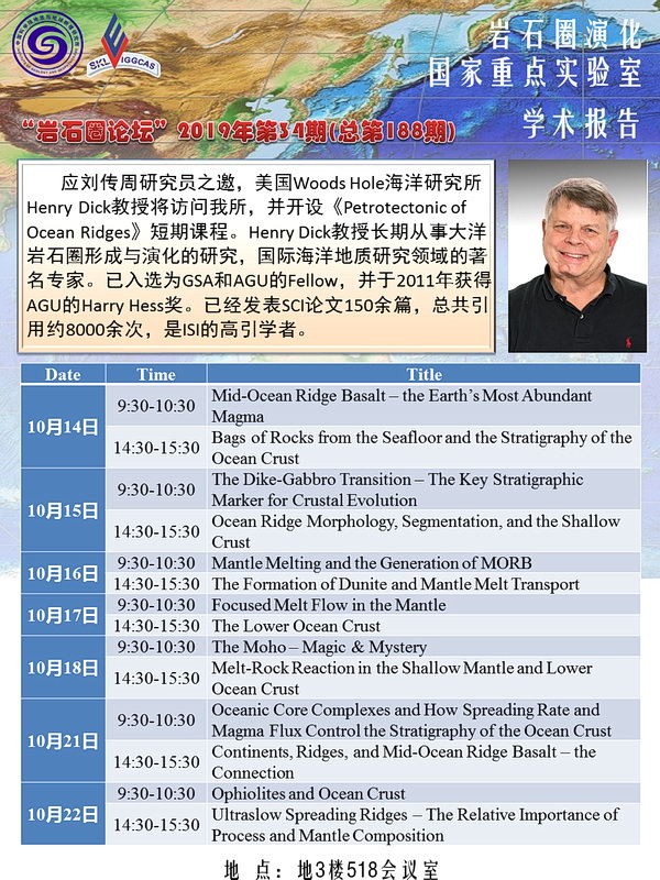 【10.14-10.22】Henry Dick教授:《Petrotectonic of Ocean Ridges》短期课程