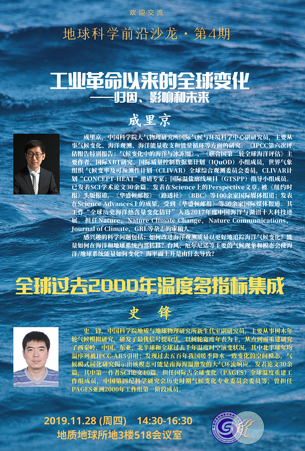 【11.28】地球科学前沿沙龙第4期:成里京 史锋